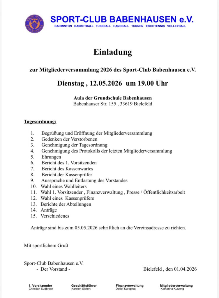 Play Pause Unmute Mute Einladung zur Mitgliederversammlung Verfasst von Katharina Kurzwig in Badminton, Basketball, Fußball, Gesamtverein, Handball, Tischtennis, Turnen, Volleyball, Vorstand an 9. April 2026 Screenshot Besuche: 2